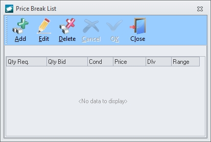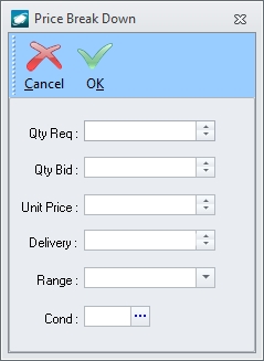 To add each quantity price break, left-click the Add button. The Price Break Down window will appear.