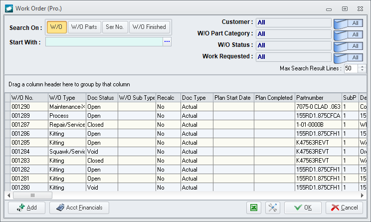 Located in the lower right portion of the search window. Selecting this button opens the component work order that is selected in the grid.