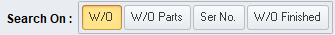 The group box labeled Search On contains four (4) buttons that correspond to searchable views of component work orders and related data.