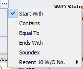 Located in the lower right portion of the search window. Selecting this button results in the display of a pop-up menu with two choices: